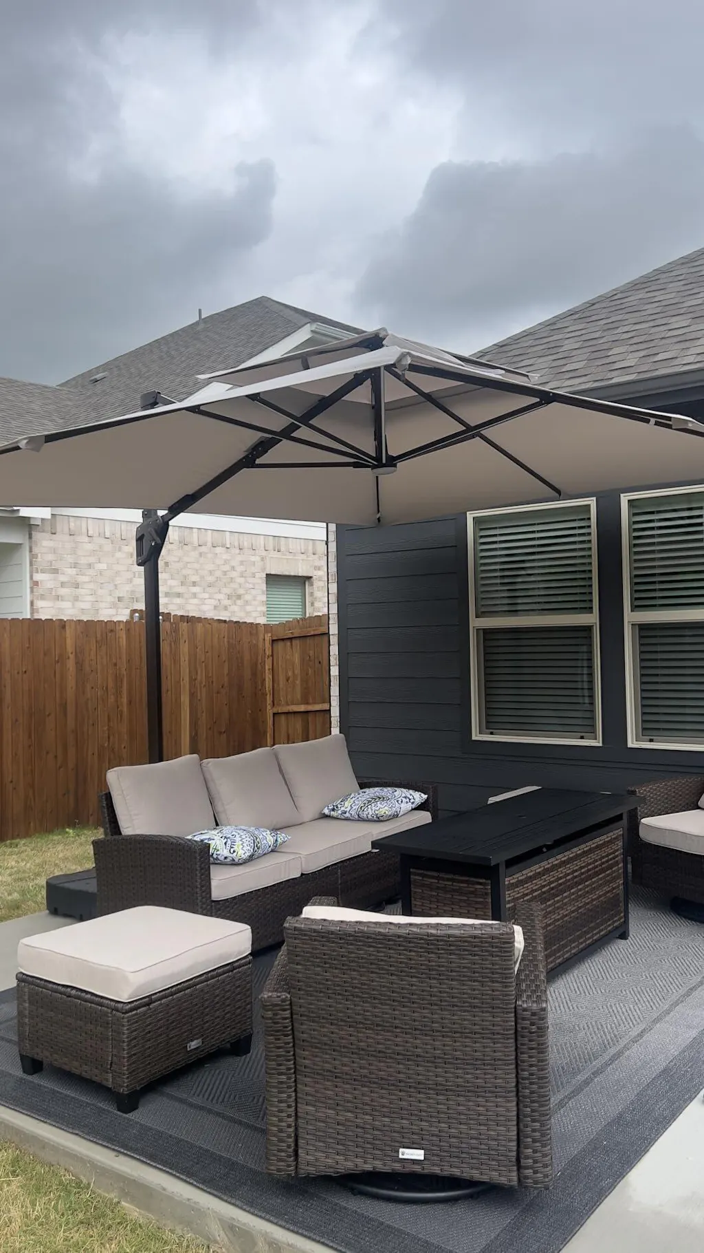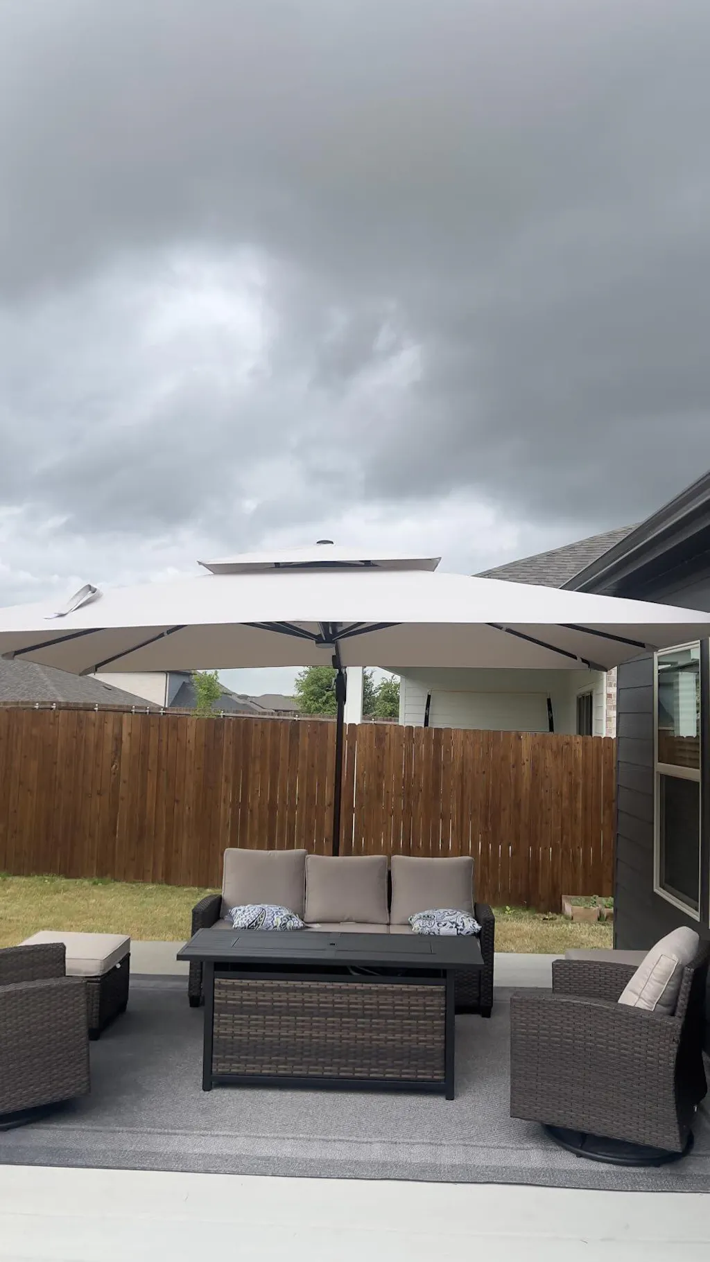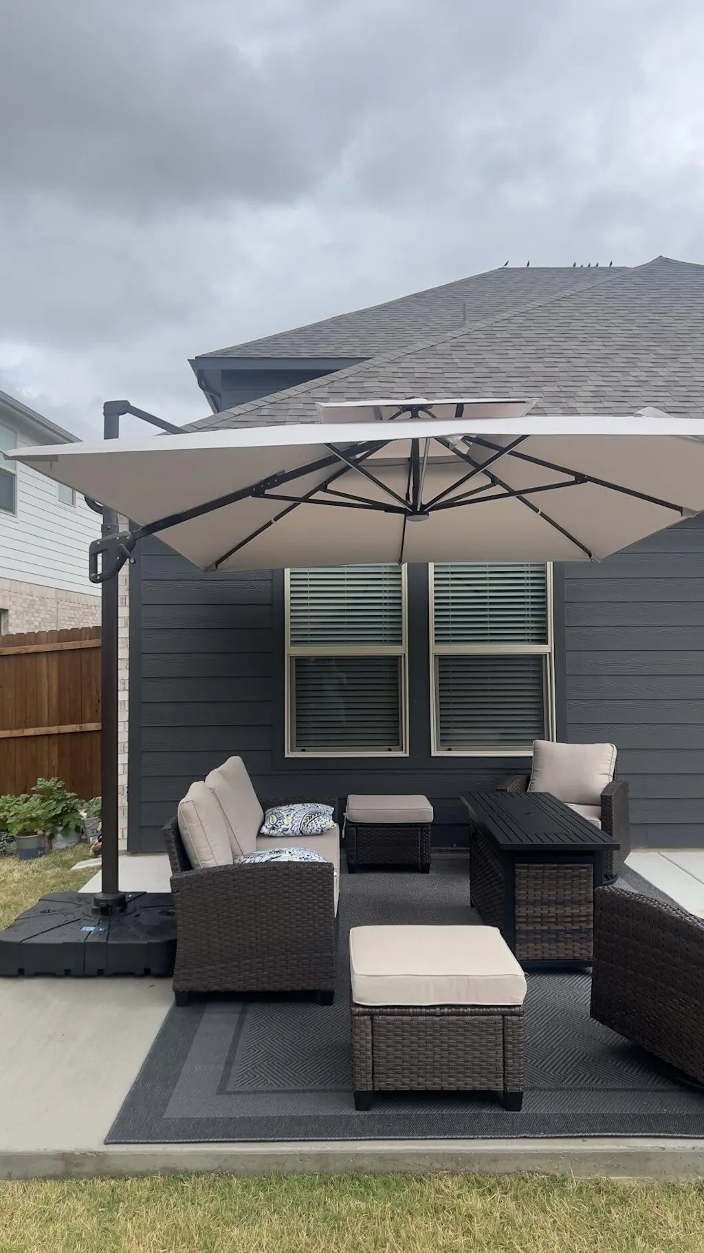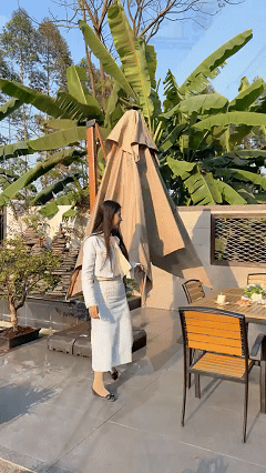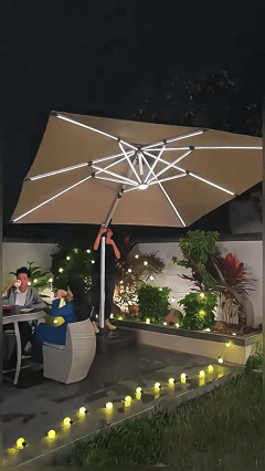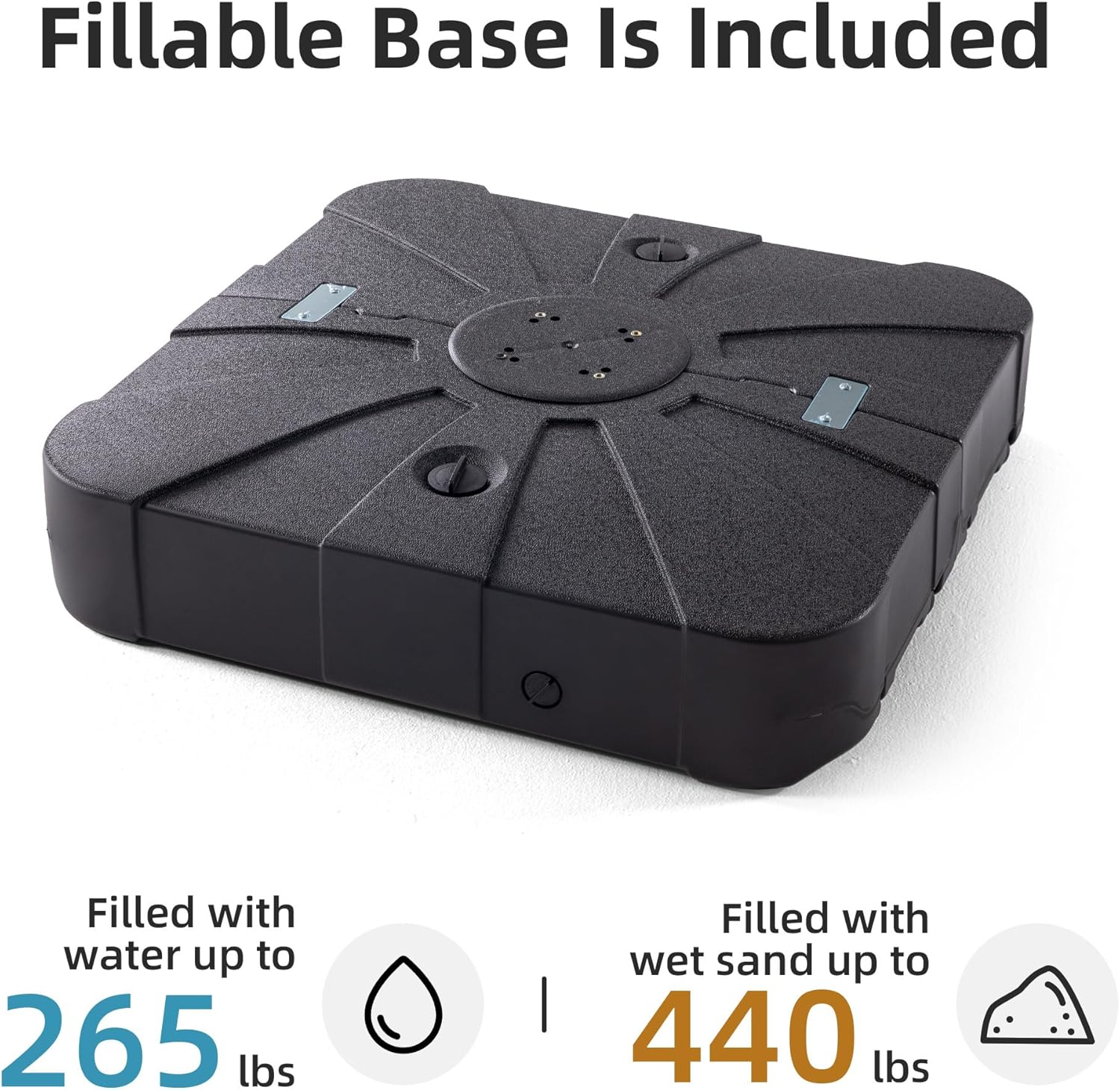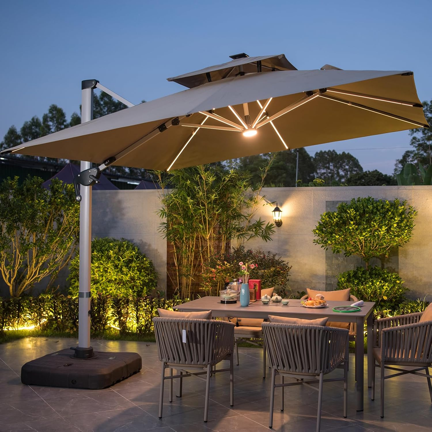 Solar LED Cantilever Outdoor Patio Umbrella with Base